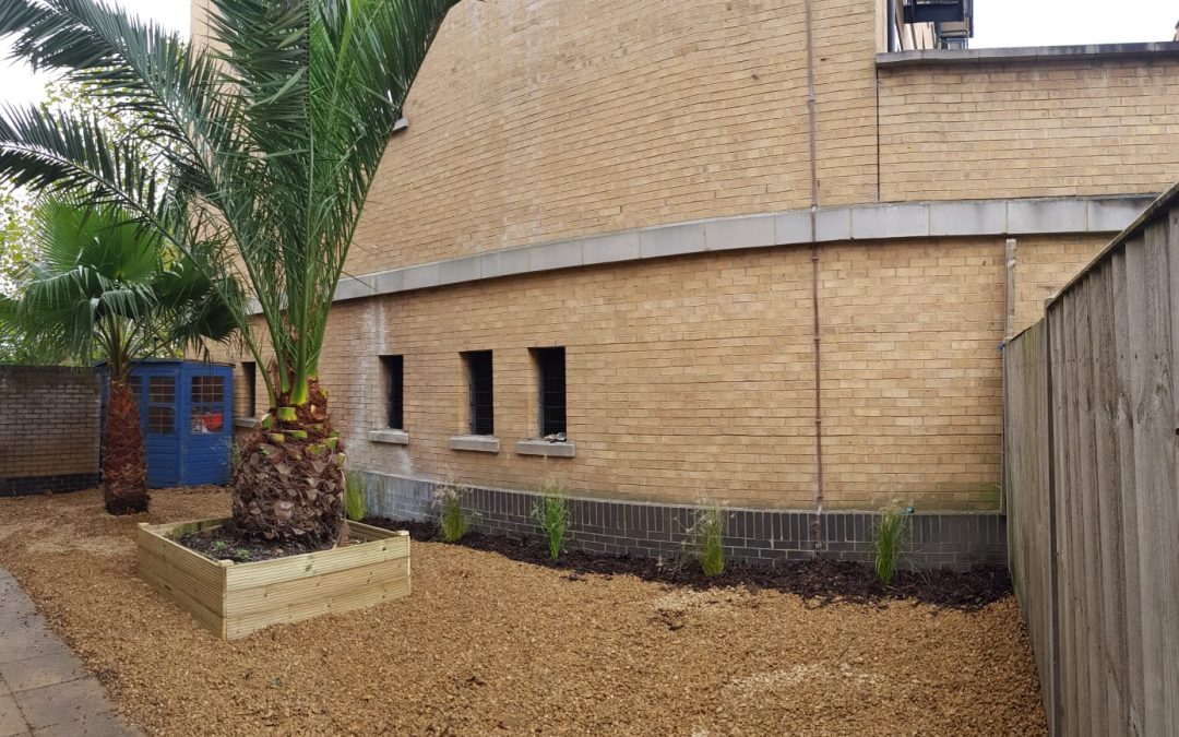 We have a contract with a residential managing agent to maintain gardens at a private development in Lewisham, London. Some of the work we do here includes, building a security fence, removing graffiti, planting new trees and shrubs and regular grass cutting